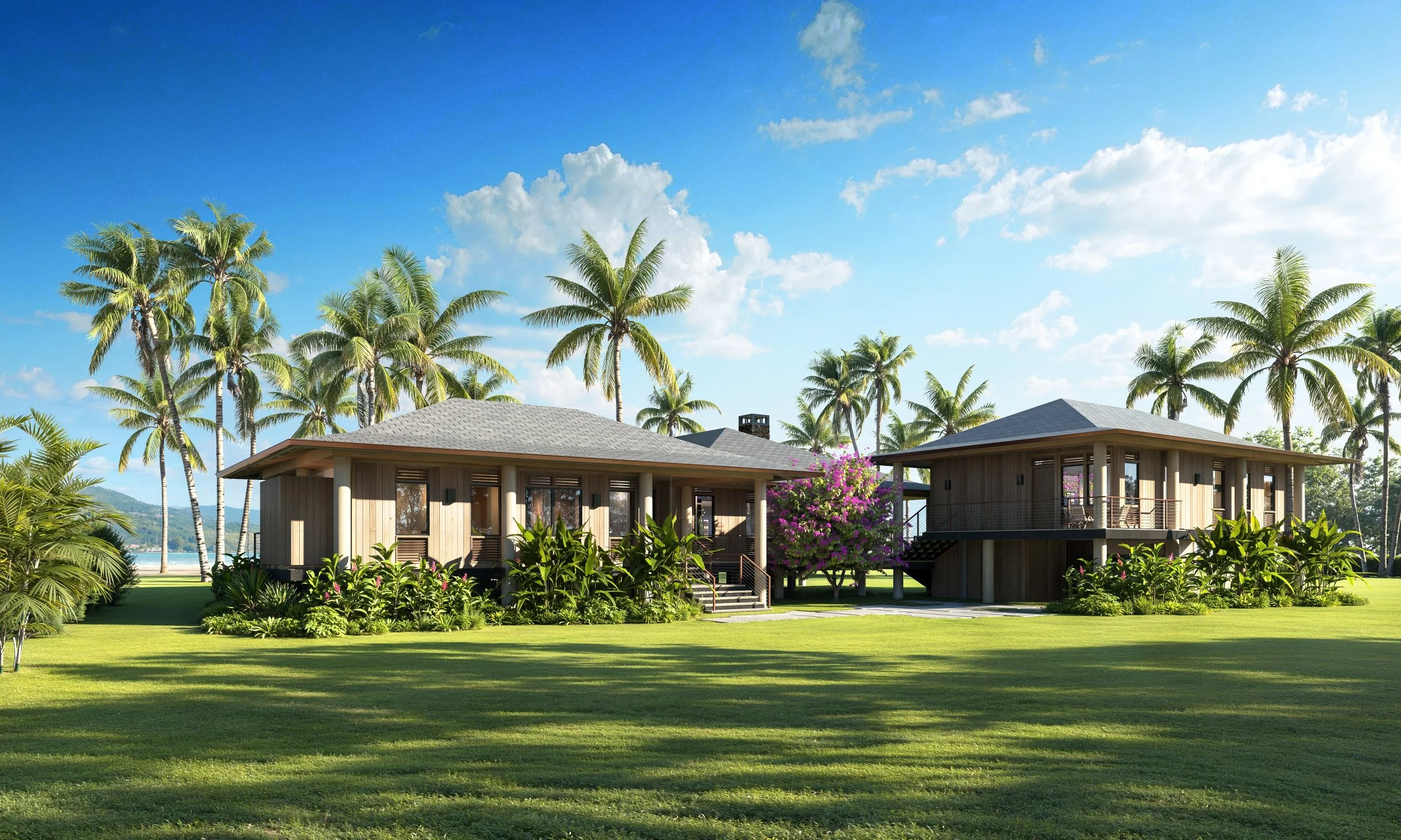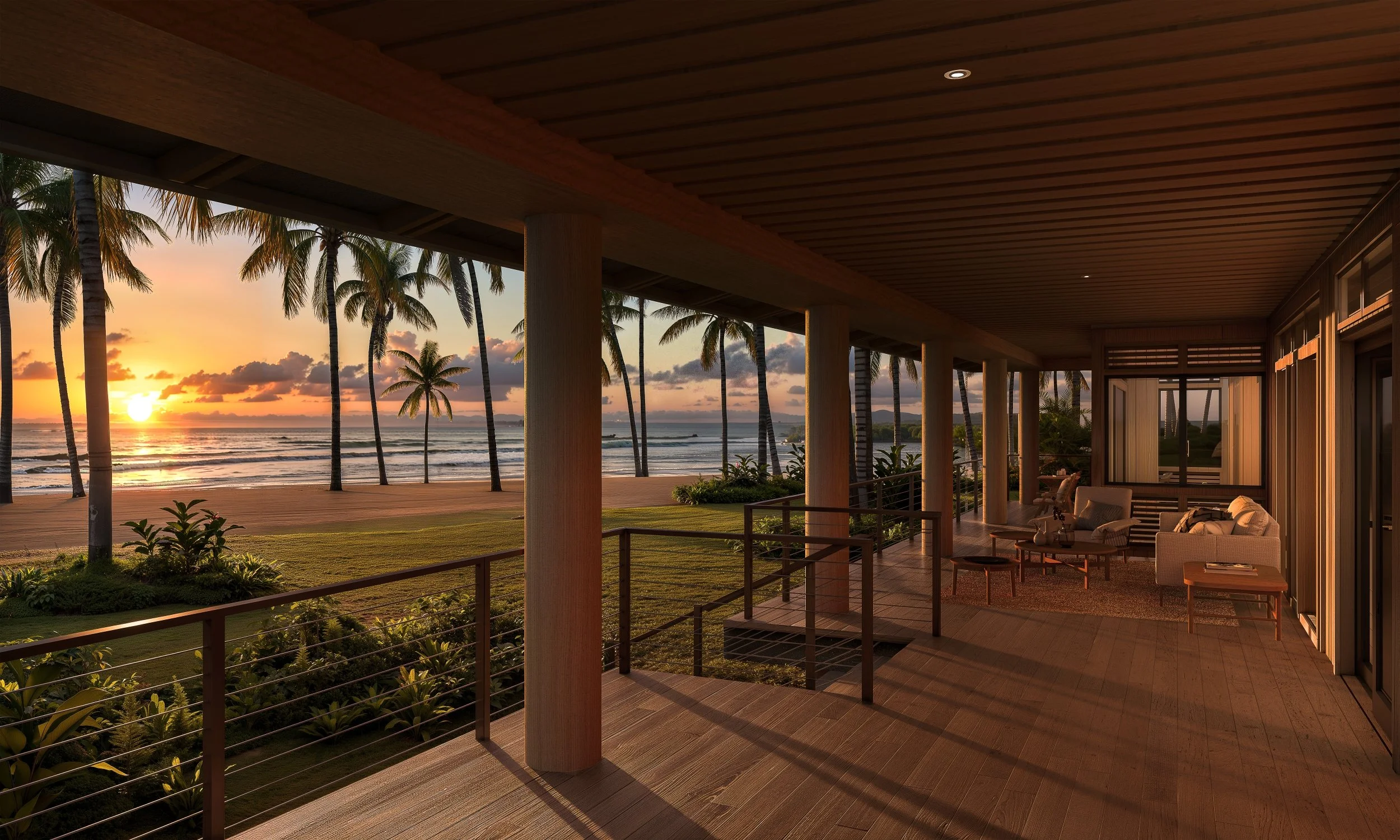 Set along the shoreline of Hanalei Bay, this beachfront home is designed to capture the rhythm of island life. Low, pavilion-style volumes are elevated above the landscape, creating shaded lanais and breezeways that frame uninterrupted views of the Pacific. Natural woods, stone, and hand-finished details establish a language of quiet luxury that feels rooted in its place.
